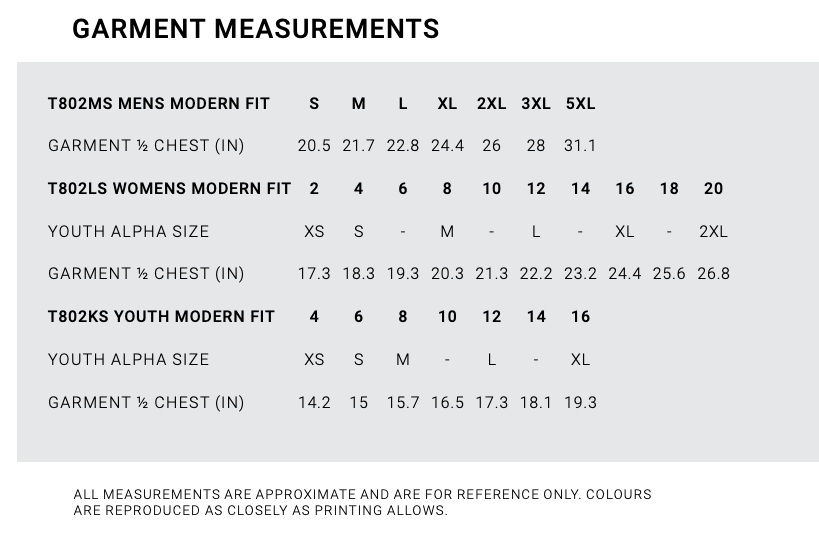 Garment 1/2 Chest 20.5 21.7 22.80 24.4 26 28 31.1