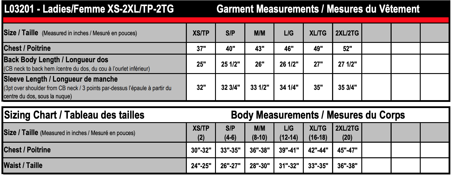 | Chest | 30"-32" | 33"-35" | 36"-38" | 39"-41" | 42"-44" | 45"-47" |