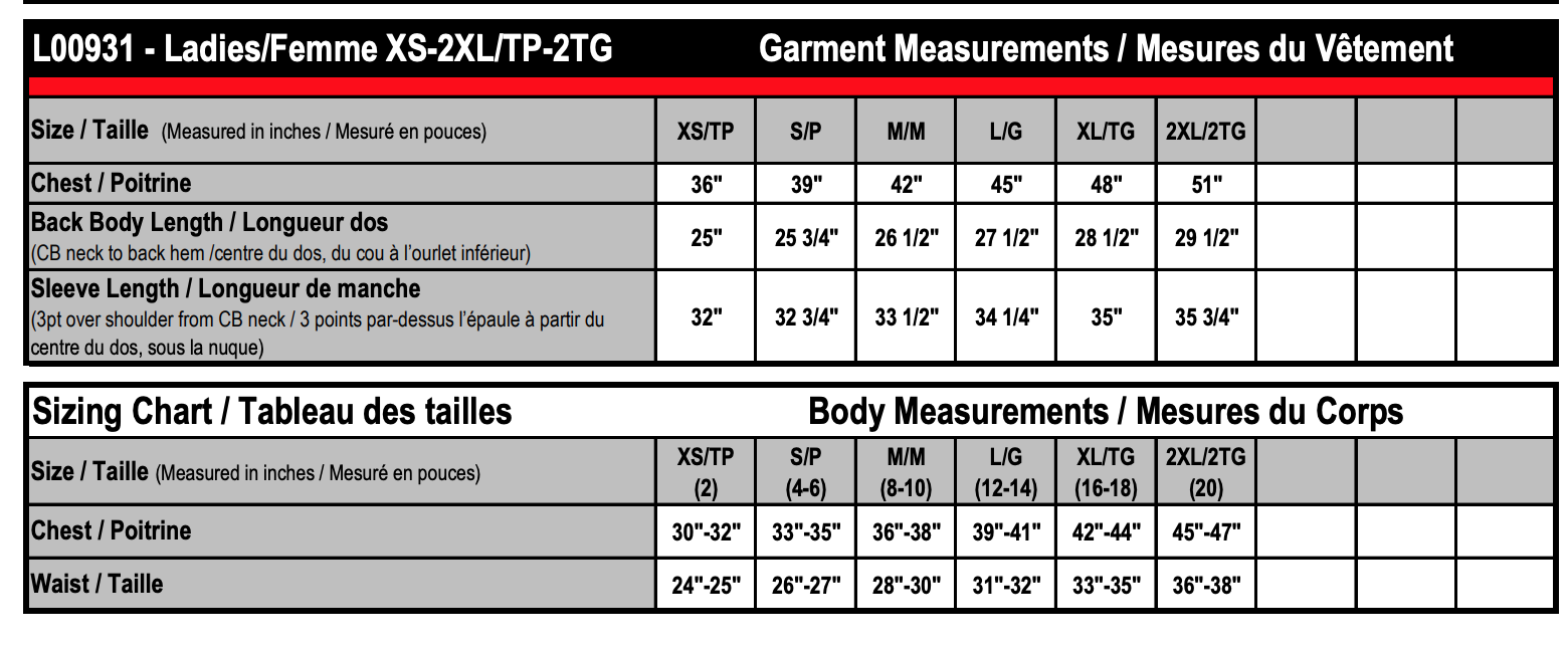 | Chest | 30"-32" | 33"-35" | 36"-38" | 39"-41" | 42"-44" | 45"-47" |