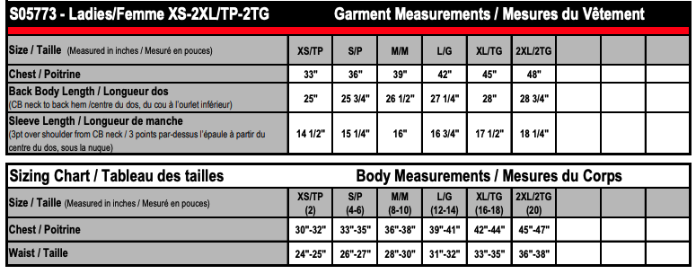 • Sizing Details