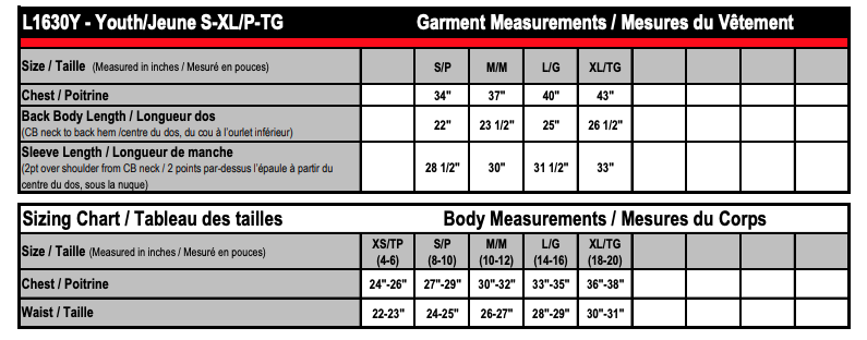 | Back Body Length | 22" | 23.5" | 25" | 26.5" |